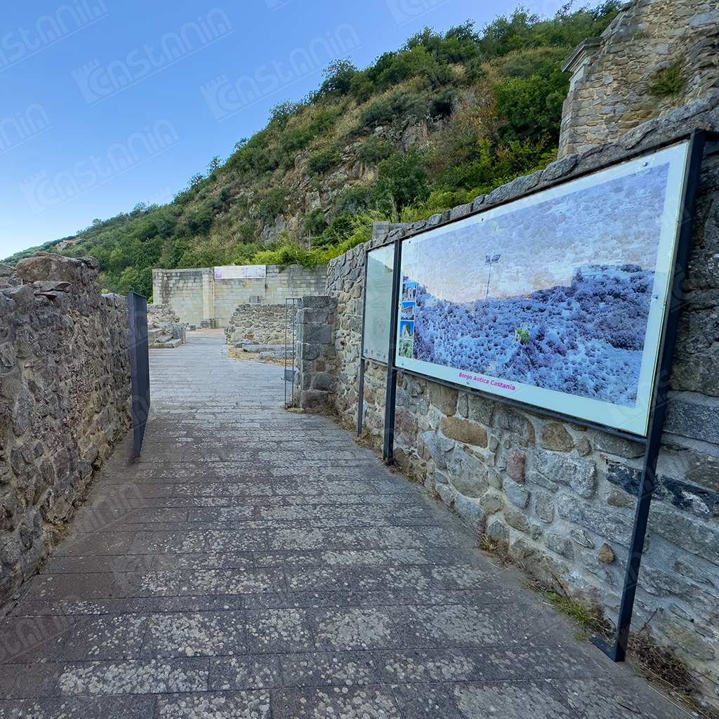 Nel cuore della tradizione spirituale e culturale del territorio si erge il suggestivo complesso del Convento Domenicano e della Chiesa di San Vincenzo Ferreri, un luogo dove fede, leggenda e bellezza si intrecciano in modo unico. La sua storia affonda nel XV secolo e nasce da un episodio carico di fascino: il Beato Giovanni di Pistoia, giunto a Castanìa, conquistò il popolo con il racconto dei miracoli di San Vincenzo Ferreri, invitandolo a sceglierlo come patrono. Prima di lasciare il paese, salì sul promontorio Caloì e, con un gesto simbolico e carico di significato, lanciò una pietra indicando il luogo in cui sarebbe sorto il convento. Proprio lì, dove il sasso si fermò, i Castanesi costruirono un complesso imponente, destinato a diventare uno dei simboli più importanti della comunità. Un tempo, la chiesa si presentava in tutta la sua maestosità: tre navate armoniose, colonne monolitiche in pietra arenaria locale, una scenografica scalinata d’ingresso e una porta monumentale che accoglieva i fedeli. All’interno, opere d’arte, affreschi preziosi e un altare in marmo finissimo contribuivano a creare un’atmosfera di grande solennità e bellezza. Oggi, ciò che resta di questo straordinario complesso conserva un fascino potente e suggestivo: l’abside centrale, le cappelle laterali, il campanile e le tracce delle antiche strutture raccontano silenziosamente la grandezza del passato. Dopo il recupero del 2009, questo luogo ha ritrovato nuova vita, trasformandosi in uno spazio aperto per eventi culturali, senza perdere la sua anima spirituale. Visitare il Convento e la Chiesa di San Vincenzo Ferreri significa lasciarsi trasportare in un racconto fatto di fede, tradizioni e paesaggi emozionanti, dove ogni pietra custodisce una storia e ogni angolo invita a fermarsi, osservare e immaginare.