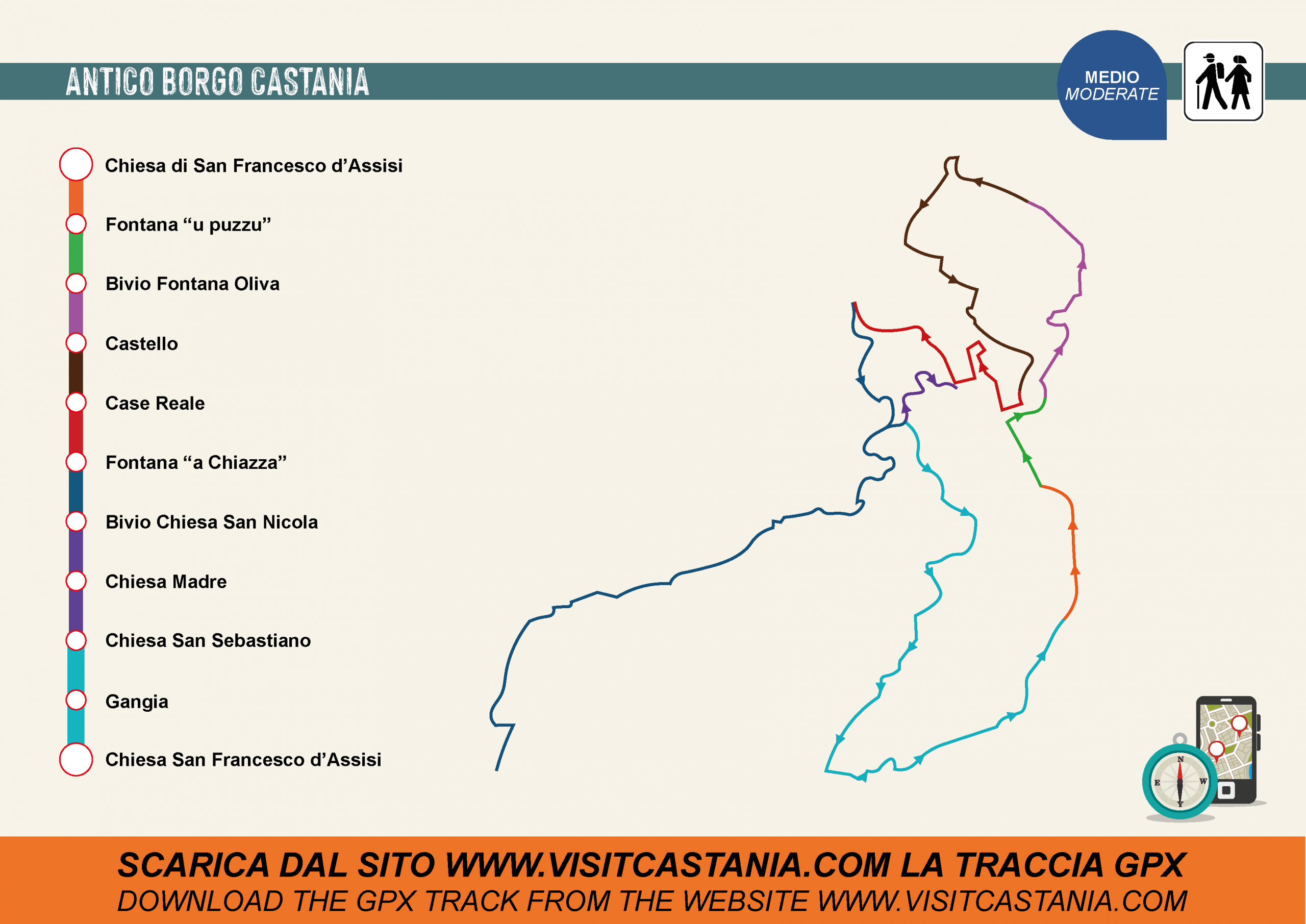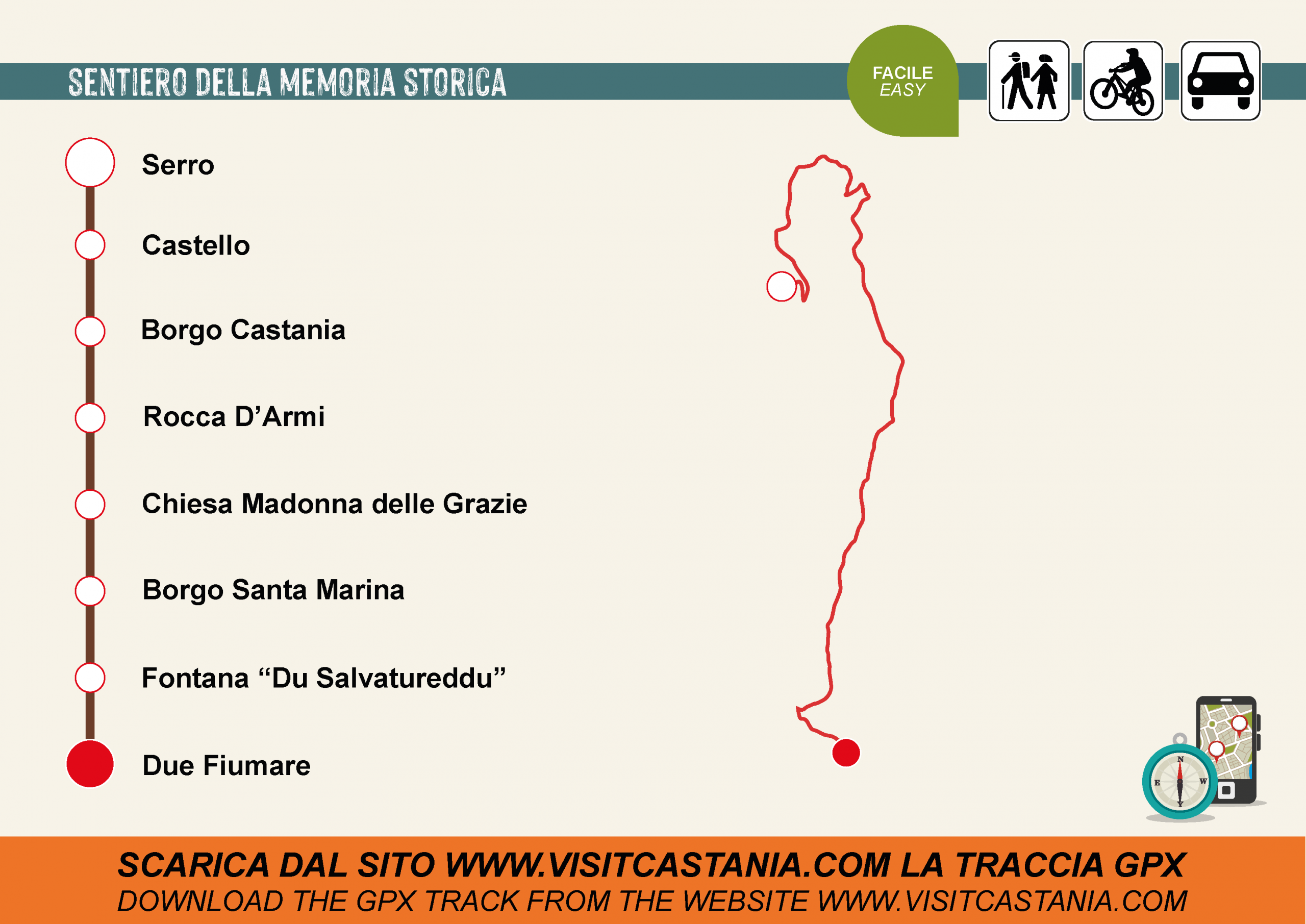 Per poter seguire il percorso anche senza linea internet si consiglia di installare l'app OsmAnd e scaricare il file Gpx per il percorso offline.